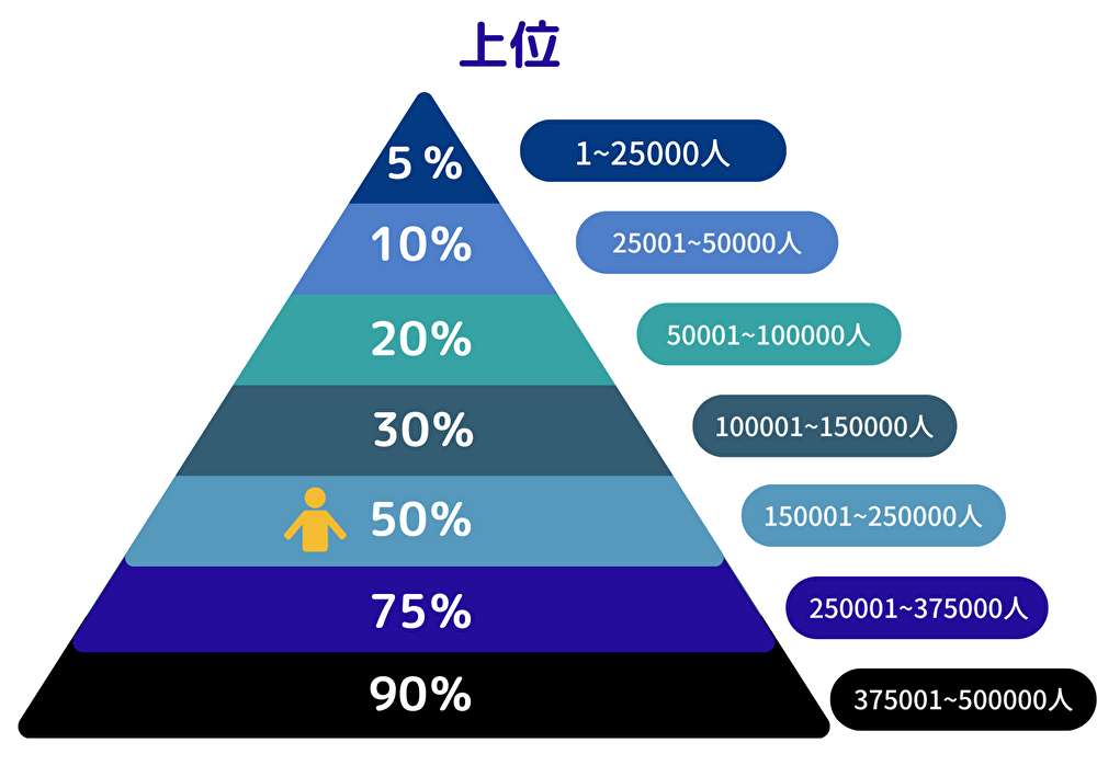 あなたの『他者への強い依存』の歪みレベルは上位50%程度(15万~25万位以内 / 50万人中)で、平均と同じレベルです。